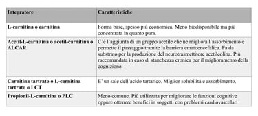 Acetil-L-carnitina (ALCAR): Questa forma di carnitina è in grado di attraversare più facilmente la barriera emato-encefalica, il che significa che può avere effetti benefici anche a livello cerebrale, migliorando la memoria e la concentrazione.