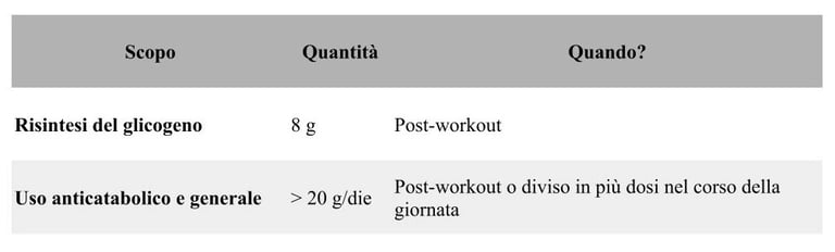 La dose raccomandata di glutammina varia a seconda delle esigenze individuali e degli obiettivi. In genere, si consiglia di assumere 5-10 grammi di glutammina al giorno, fino a 20 g al giorno suddivisi in 2-3 dosi. È preferibile assumere la glutammina dopo l'allenamento