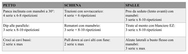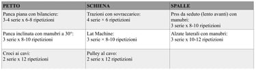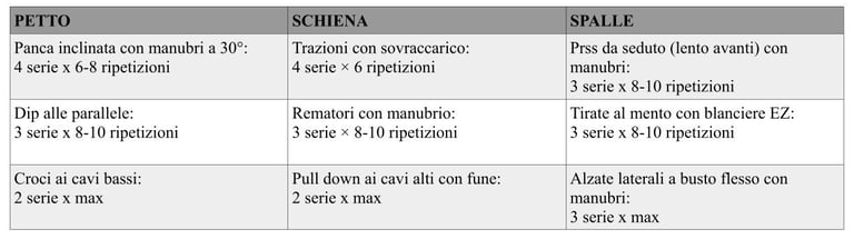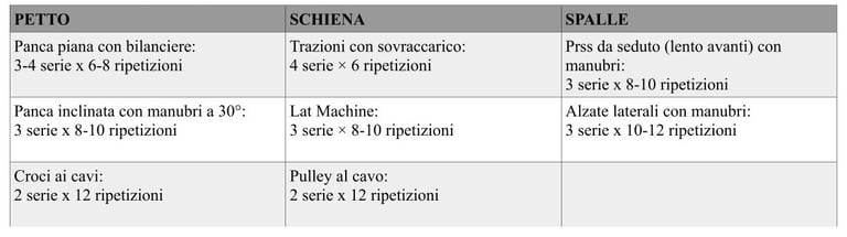 Giorno 1: Parte superiore (petto, schiena, spalle,)