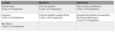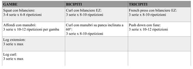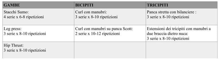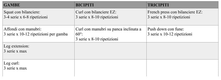 Giorno 2: Parte inferiore (gambe, bicipiti, tricipiti)