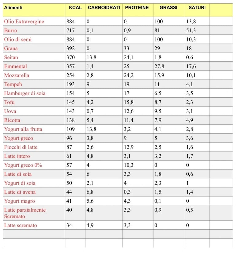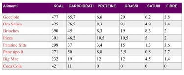 Tabelle calorie degli alimenti per 100 grammi