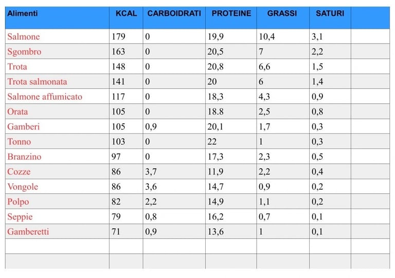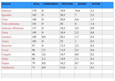 Tabella Calorie Pesce