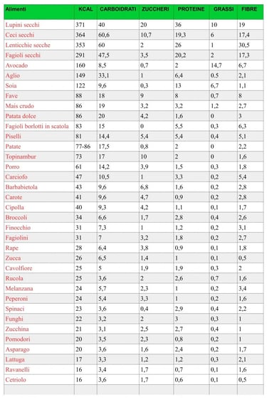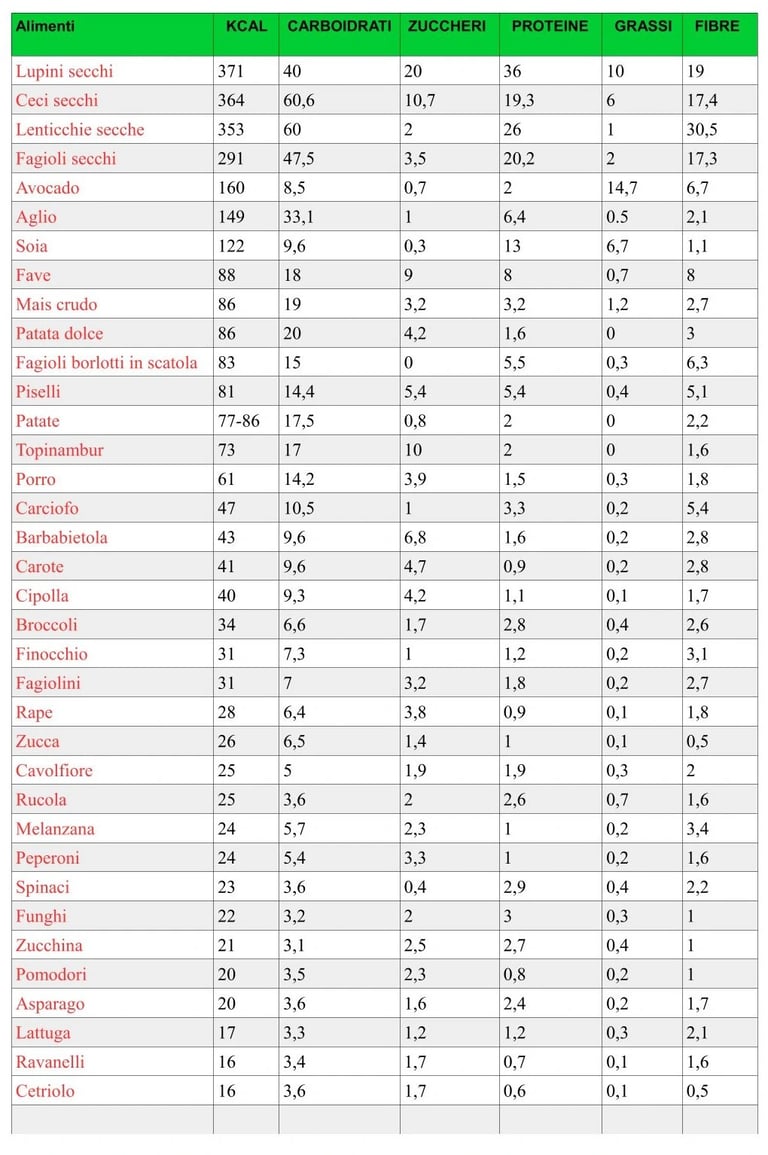 Tabella Calorie Verdura